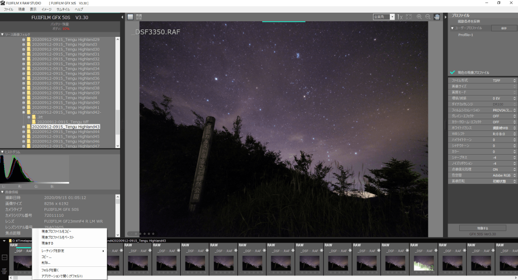 X RAW STUDIOはカメラ内RAW現像をPCでやるって感じなので、残念ながら私の用途では不十分でして。X RAW STUDIO内で完結できれば一番いいんですけど・・・。