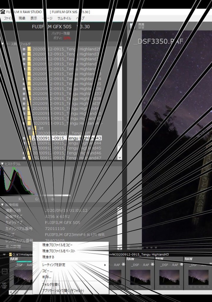 ですが今回の件を踏まえて、心の底から残念ですが、私のタイムラプス撮影においてGFXは対象外にしようと思います。(昼間撮るには問題ないんですけど)