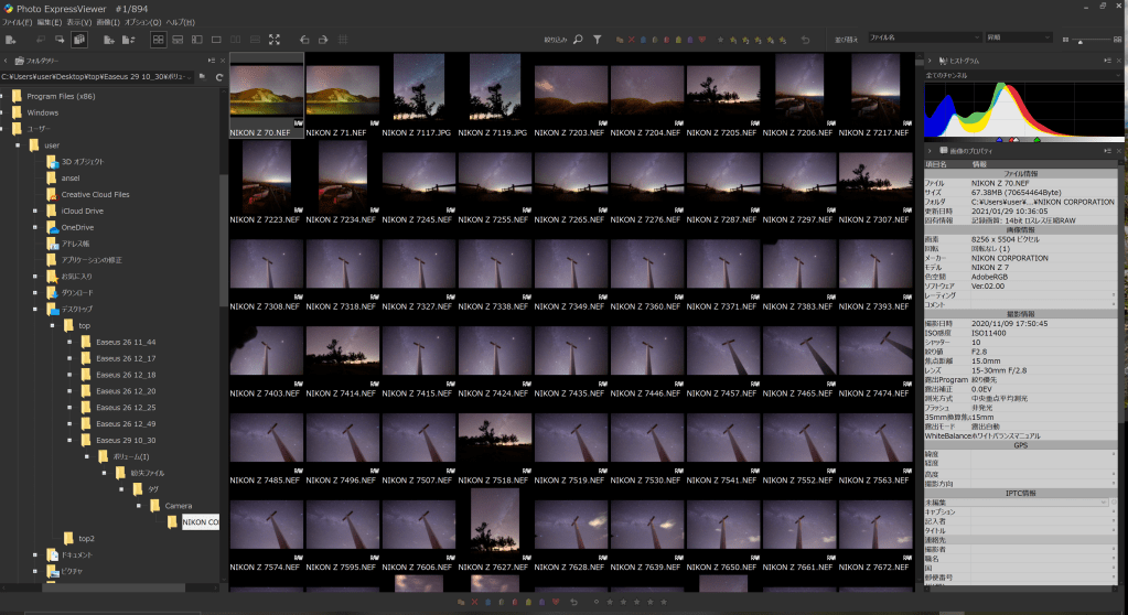 このデータはタイムラプスだからここに保存して、写真データはここに保存して、コンポジット用の天体写真データはこちらに、動画データはこちらに・・・みたいな感じで大きく4つに振り分けます。