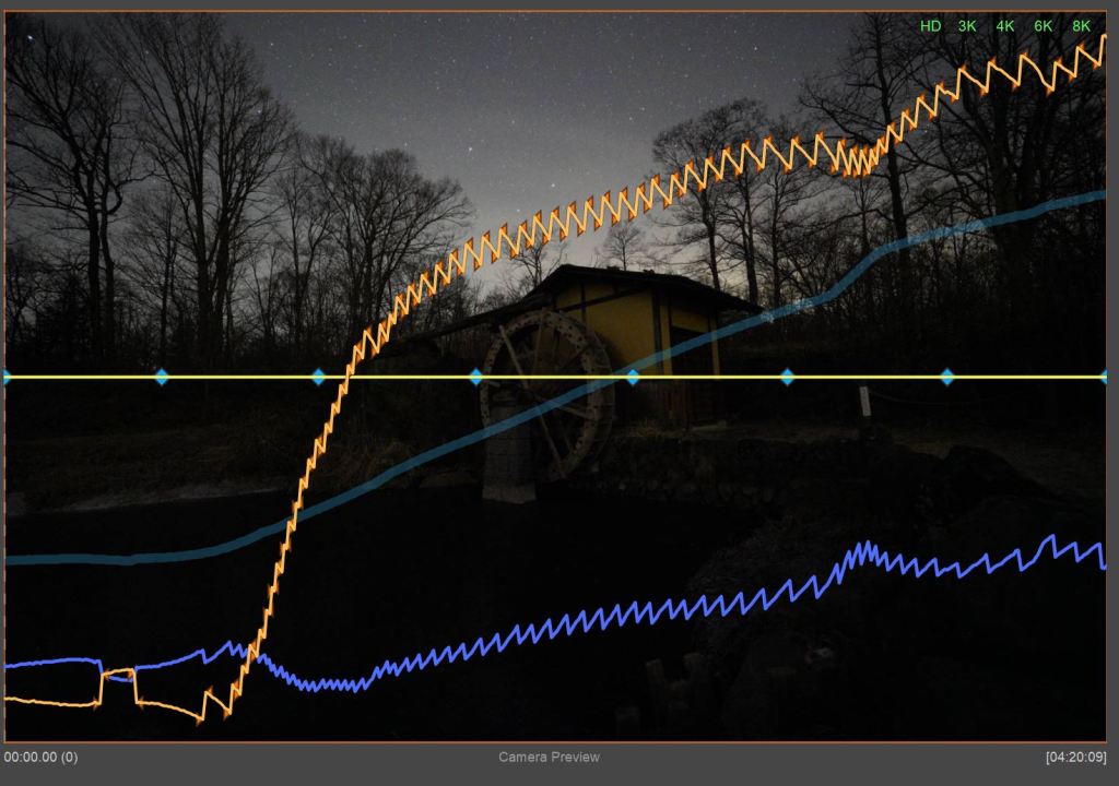 うわぁ~ついにHoly Grailの素材にまで色ムラが起こりやがった!これは露出平滑化をしないといけないから必ずLRTimelapseの処理が必要ですが、残念ながらLRTimelapseはjpeg、tiffには対応していないのです。RAWじゃないと処理できない。